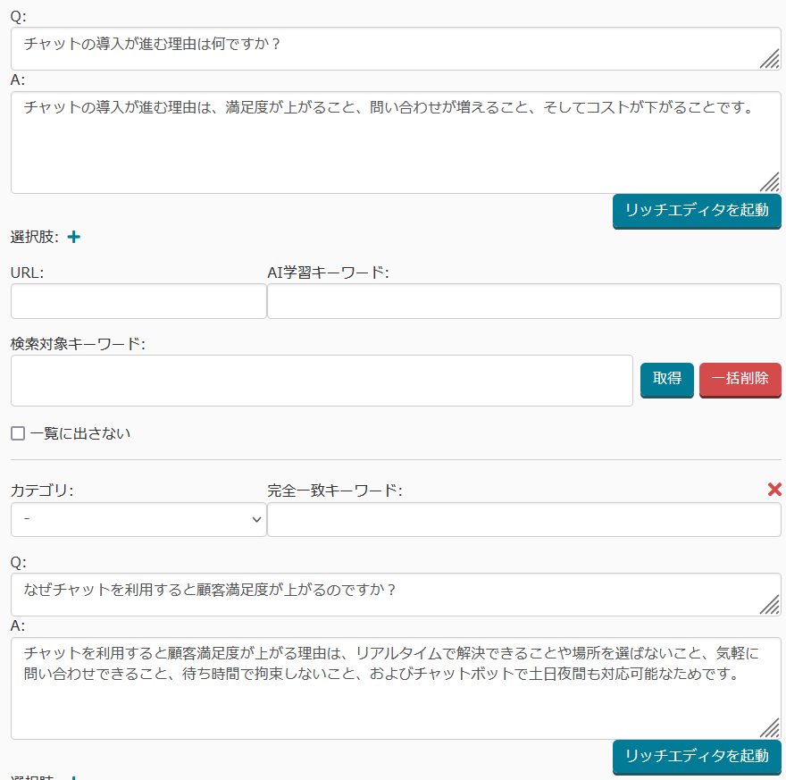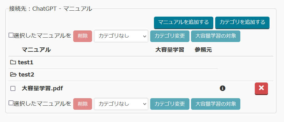 資料やURLから直接回答を生成する機能、「ChatGPTマニュアル連携」において、学習済みのURLの確認、削除ができる機能の追加をしました。