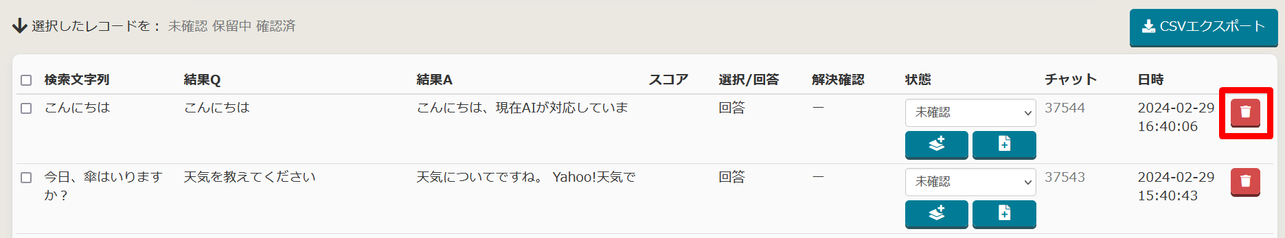 フリーワードレポート内に削除機能を追加
