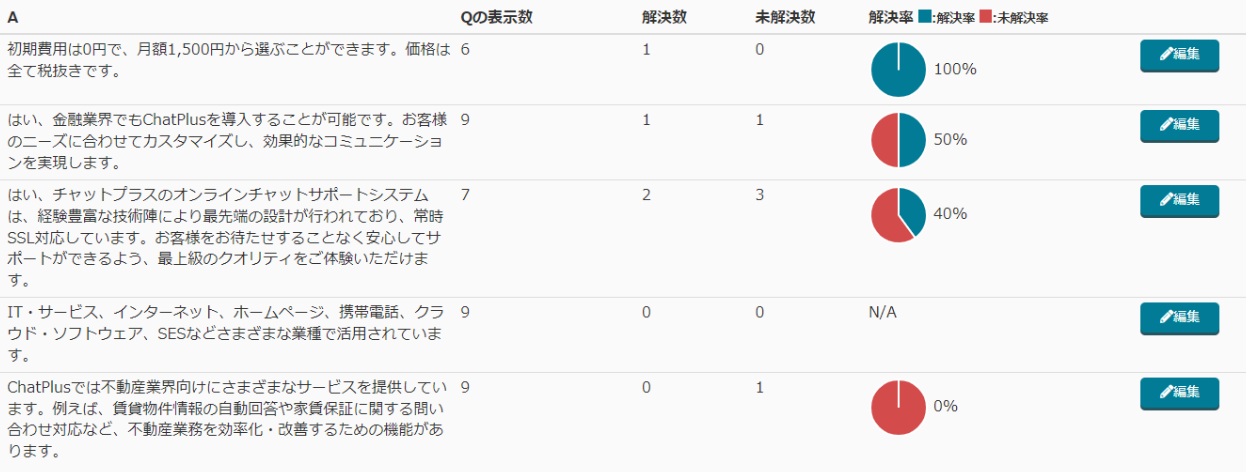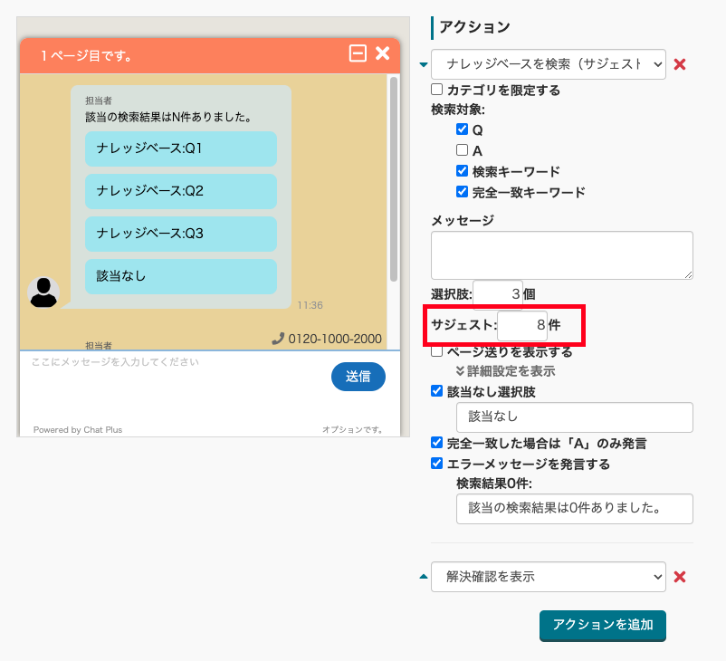 登録している「Q&A」の数によって調整することで、より解決につながりやすいチャットボットの設定ができます。