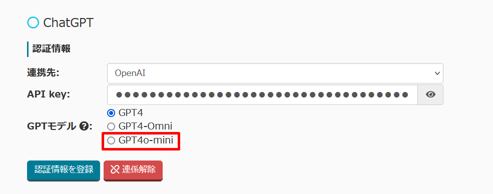 ChatGPT連携、最新モデル「GPT4o-mini」に対応