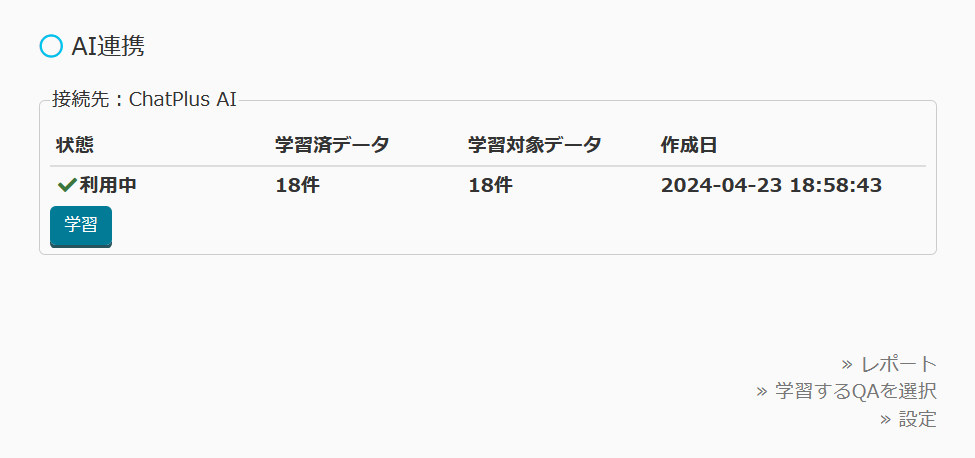 ChatPlusAIの学習件数が表示可能に