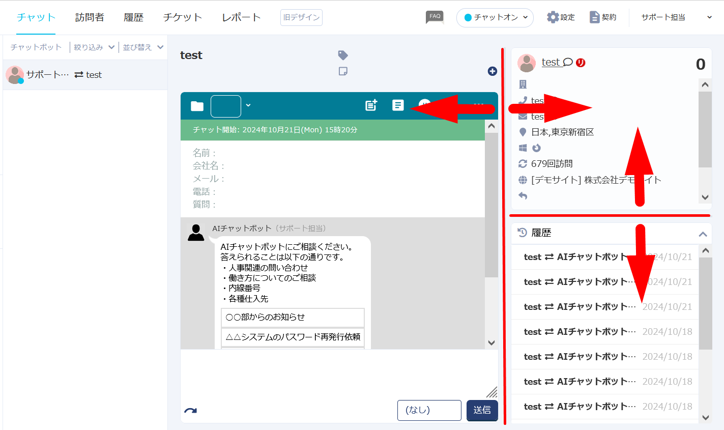 先月リリースいたしました新デザインのチャット応対画面において、訪問者及び履歴ウィンドウのサイズが調整できるようになりました。