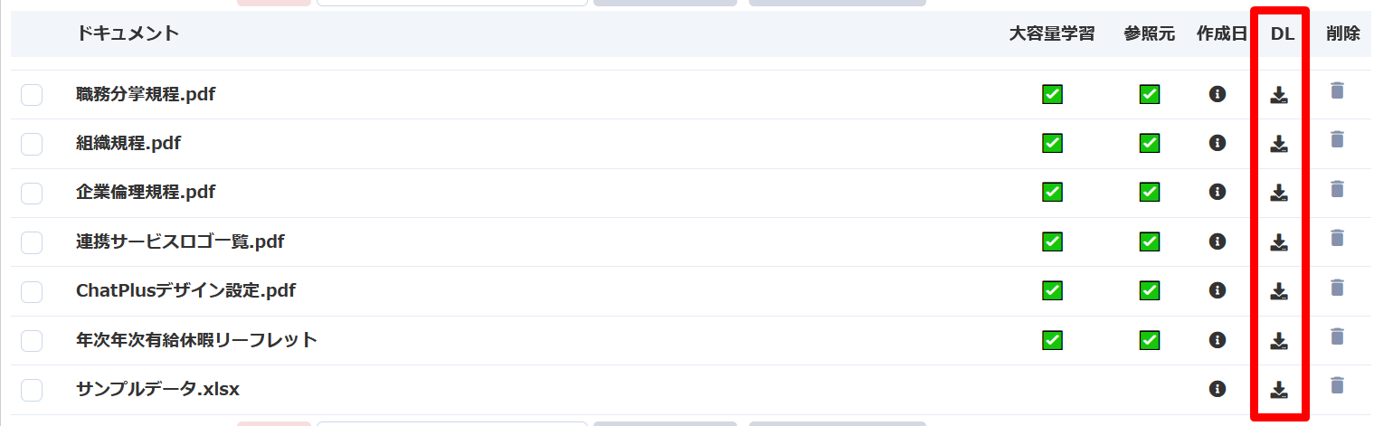 資料やURLから直接回答を生成する機能、「ChatGPTマニュアル連携」において、これまではPDFファイルのみ学習済みのファイルをダウンロードできましたが、拡張子に関わらず学習済みファイルをダウンロードできるようにしました。