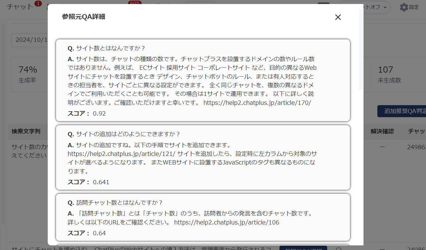 Q&Aからから直接回答を生成する機能、「ChatGPTフリーワード連携」において、生成後のレポート画面から、参照したフリーワード(Q&A)の編集画面に遷移できるようになりました。