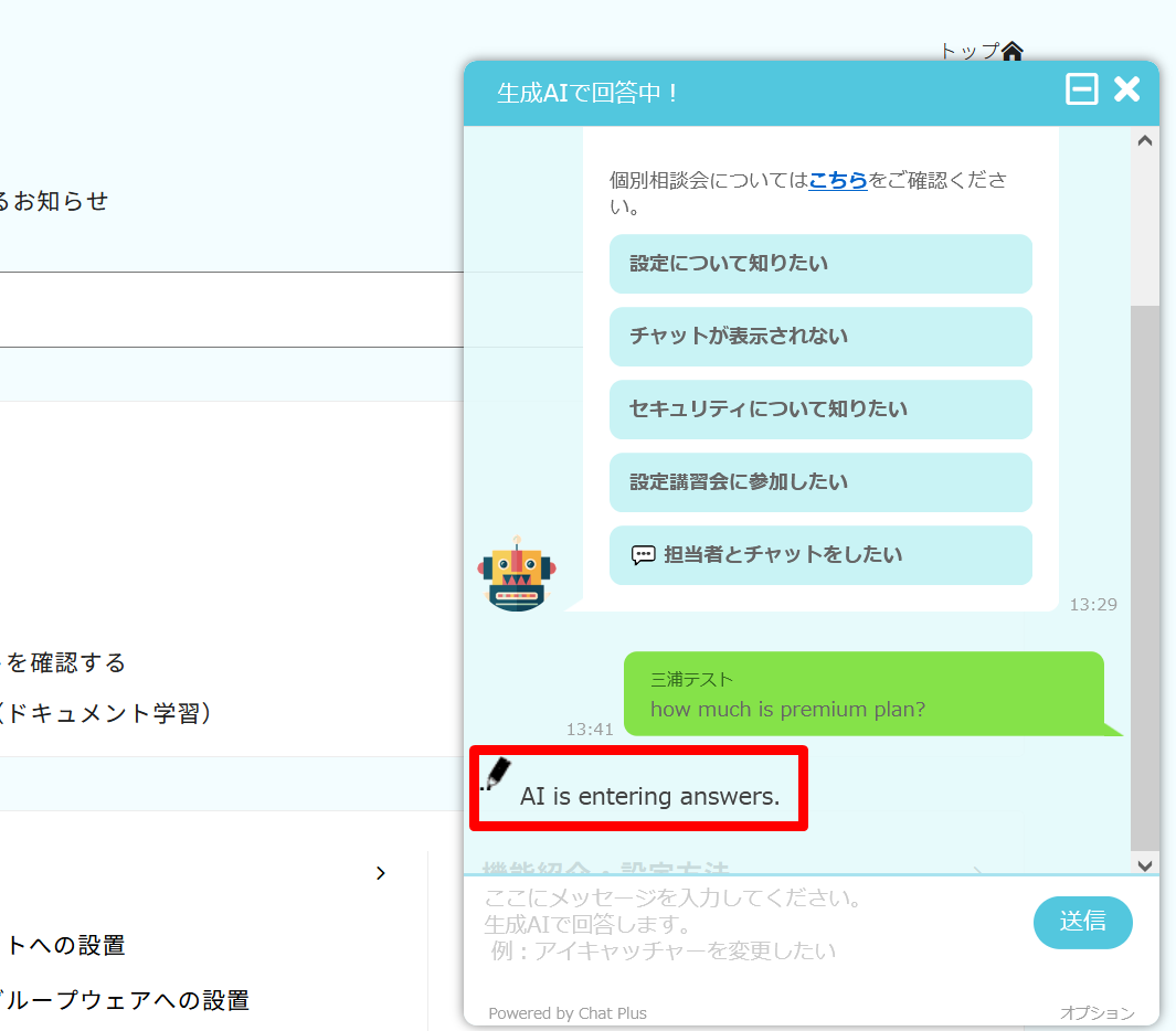 ※AIチャットボットプラン(生成AI)でご利用いただけます。