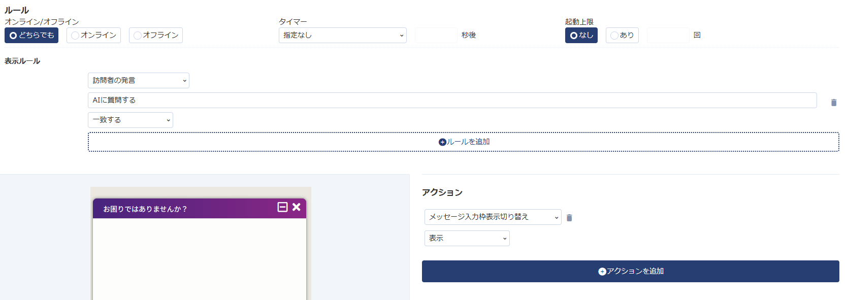 チャットボット+にメッセージ入力枠の表示、非表示を切り替えるアクションを追加しました。