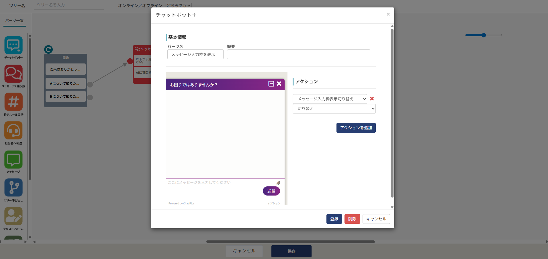 ツリーエディタ チャット中/チャットボット中での分岐パーツを追加