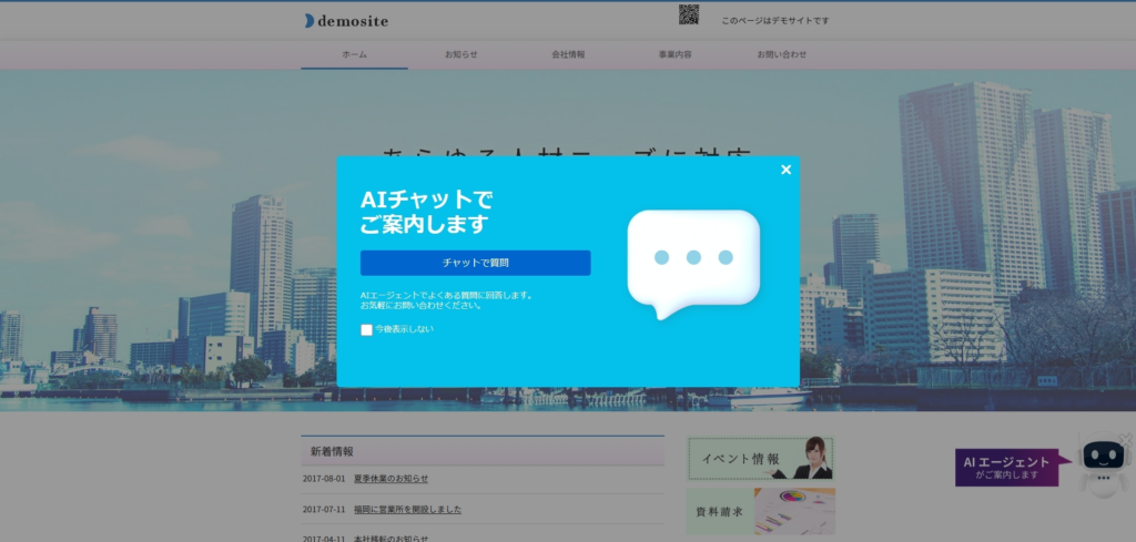 お知らせポップアップ内のボタンからチャットを起動できるようになりました。
