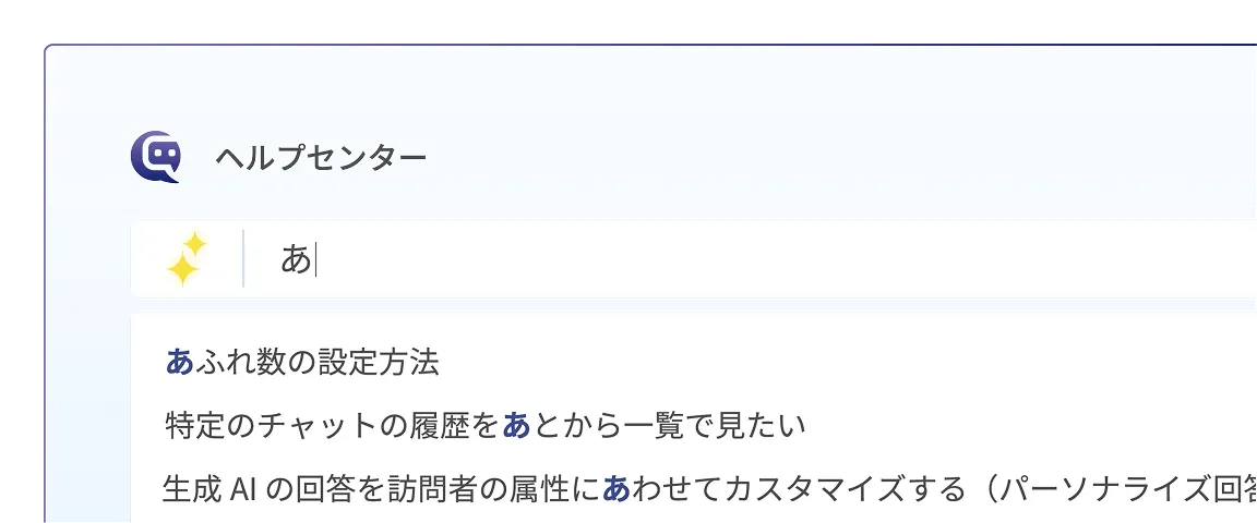 入力途中で候補を自動表示するリアルタイム予測機能。お客様が検索キーワードを迷わず、欲しい答えに素早くたどり着ける。