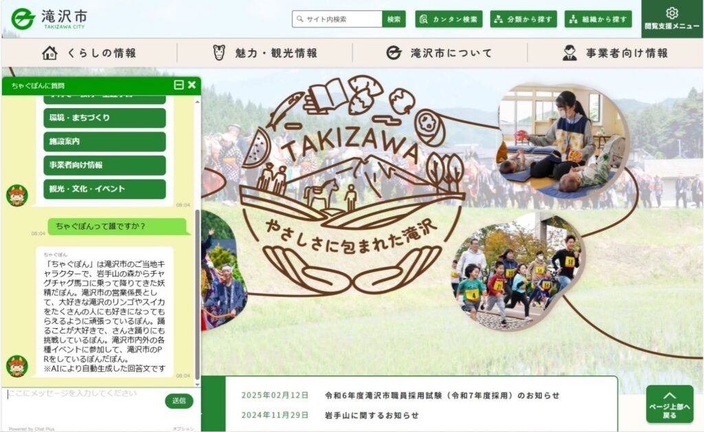 岩手県滝沢市ご当地キャラ「ちゃぐぽん」がAIチャットボットに!月5~600件の問い合わせ対応をこなす活躍ぶり。生成AIにより職員の運用負担を最小化