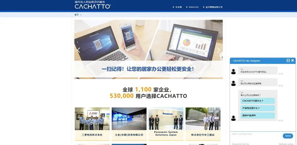 世間ではクラウドサービスの利用が拡大していますが、アジアエリアには、まだまだオンプレミスの環境の企業が多くあります。CACHATTOは、オンプレミスへのアクセスでもクラウドへのアクセスでも、どちらにも適用できるところが強みです。テレワークを実施したい企業があれば、私たちのWebサイトを一度覗いてみてください。