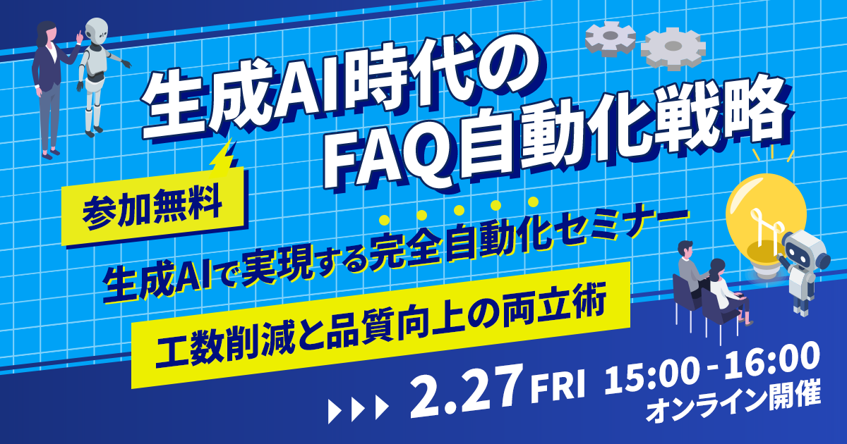 2月27日(金)FAQ担当者必見!生成AIで実現する完全自動化セミナー~工数削減と品質向上の両立術~
