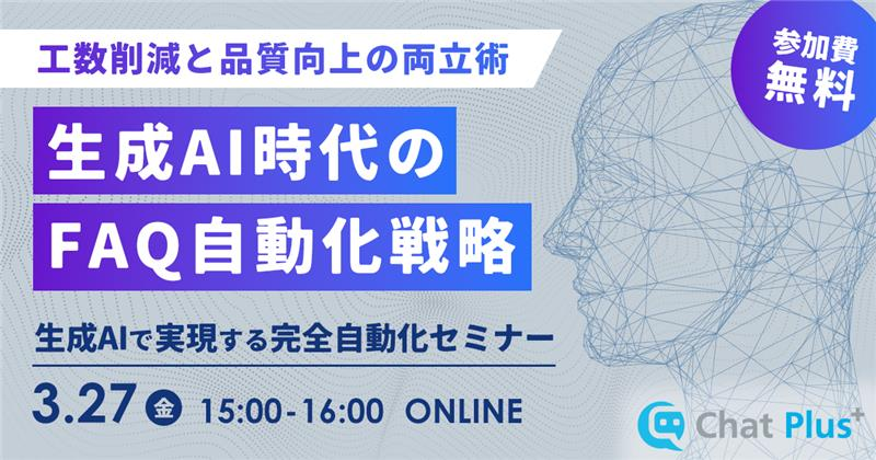 3月27日(金)FAQ担当者必見!生成AIで実現する完全自動化セミナー~工数削減と品質向上の両立術~