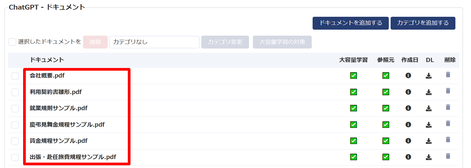 ChatGPTマニュアル連携 ファイル名を学習対象に