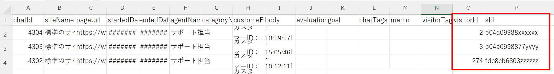 履歴をCSVファイルにダウンロードした際、訪問者を識別できるvisiterId、sIdが入るようになりました。
