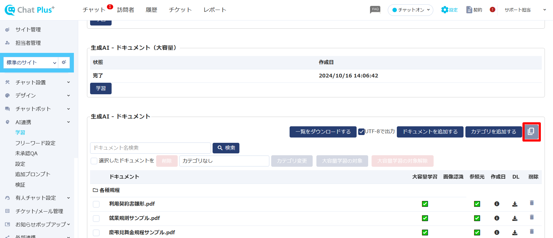 資料やURLから直接回答を生成する機能、「生成AIマニュアル連携」において、学習済みのデータを別サイトにコピーできる機能を追加しました。検証環境から、実環境への移行などが簡単に行えます。