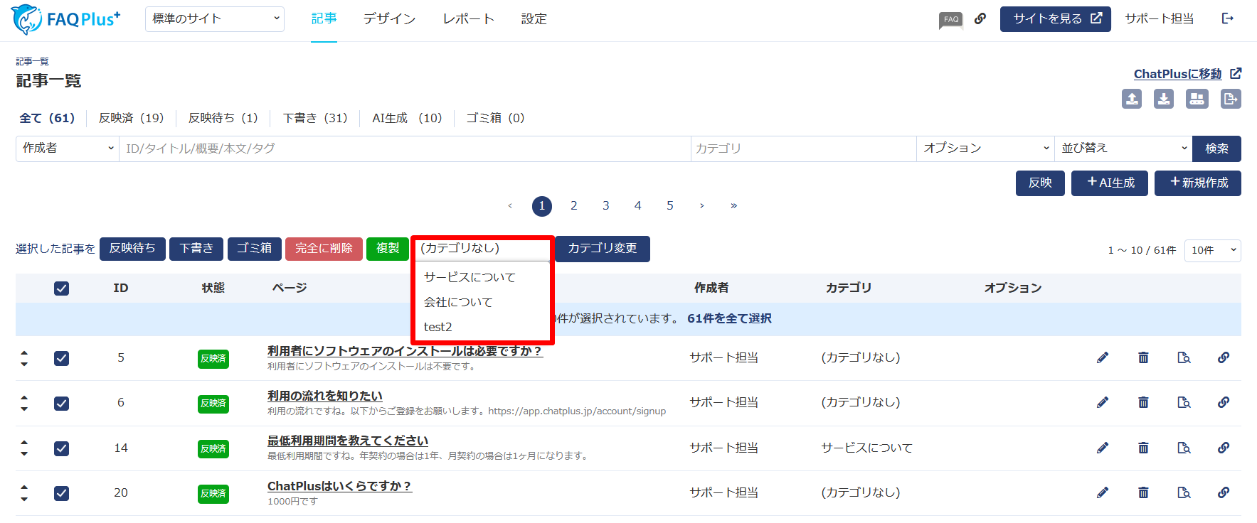 複数記事のカテゴリを一括で変更できるようになり、より運用がしやすくなりました。