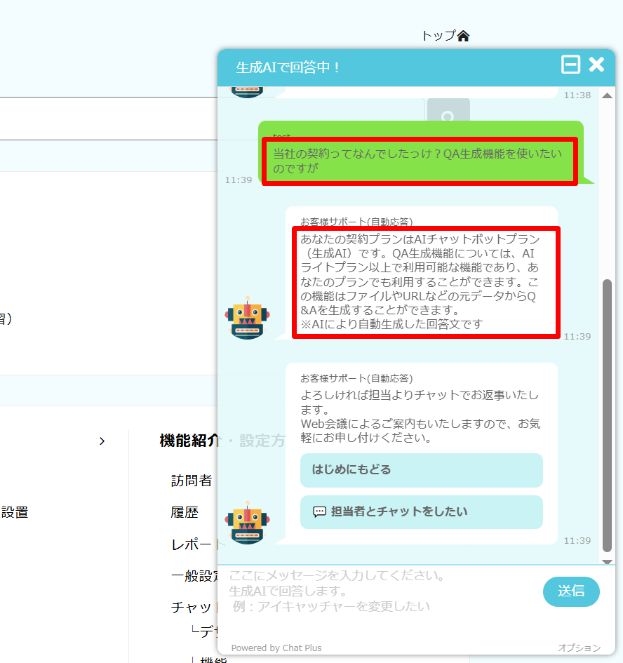 ※AIチャットボットプラン(生成AI)でご利用いただけます。