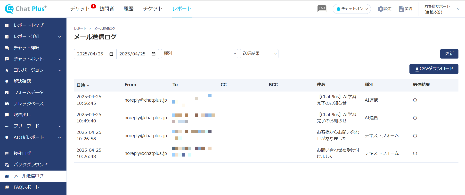 管理画面内でChatPlusからのメールの送信ログを確認できるようになりました。
