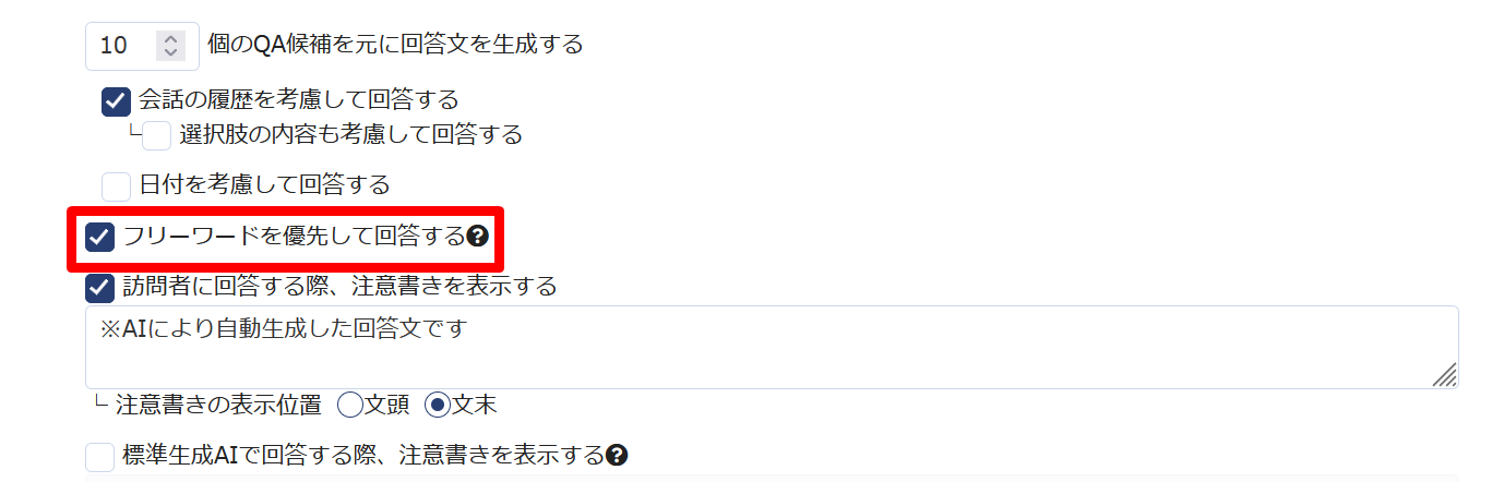 生成AI回答 フリーワードとドキュメントの優先度設定が可能に