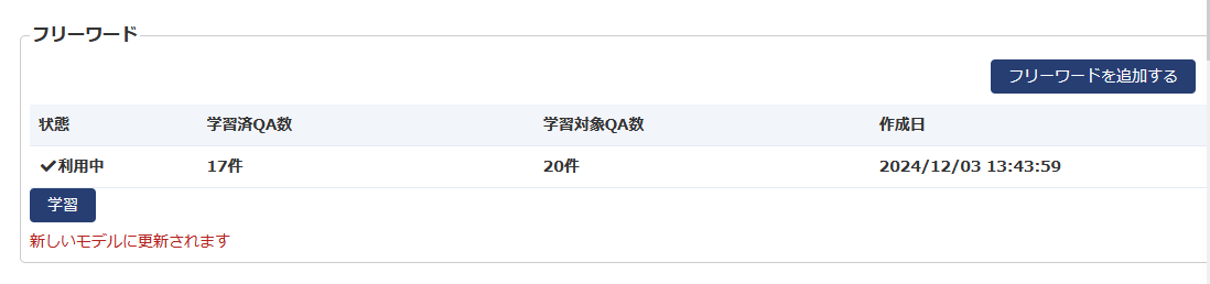 フリーワードの入力履歴の一括チェック&ステータス変更が可能に