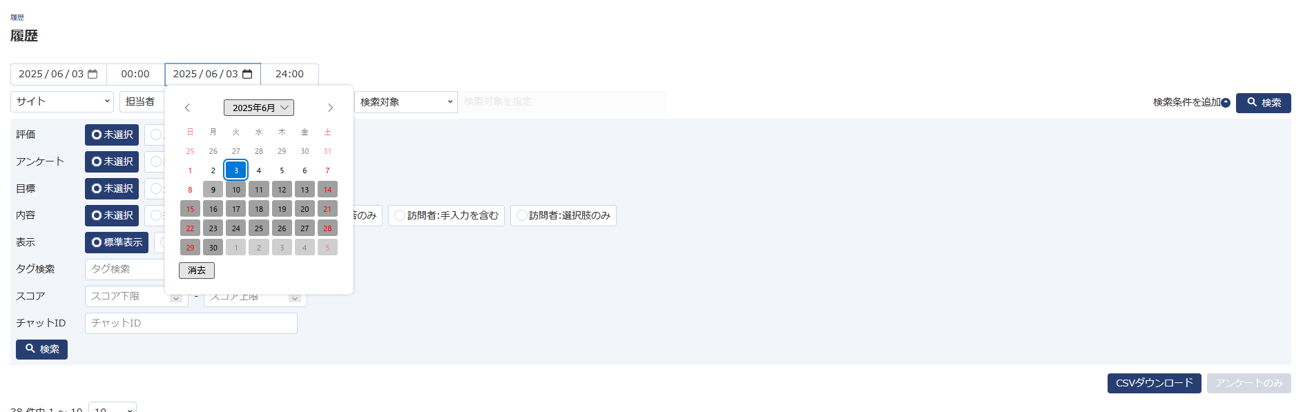 履歴の日付指定をアップデートしました。開始日を終了日より後の日付に設定した場合、終了日が自動で調整されます。これにより入力ミスを防ぎ、スムーズに履歴検索が行えるようになりました。